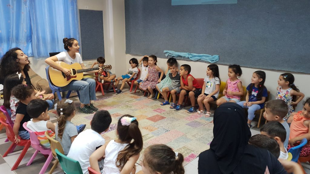 احدى الأنشطة المفضلة للأطفال هي الجمع بين الموسيقى والحركة. من خلال النشاط، يتعرف الأطفال على المواسم، الاعياد، والأحداث الهامة والمجالات المختلفة للموسيقى. كجزء من كشف الأطفال للغة العبرية ، يتم تدريس هذا النشاط من قبل معلمة تتحدث العبرية كلغة أم أثناء تحفيز الحركة وتطوير المهارات اللغوية ، التمثيل والغناء.